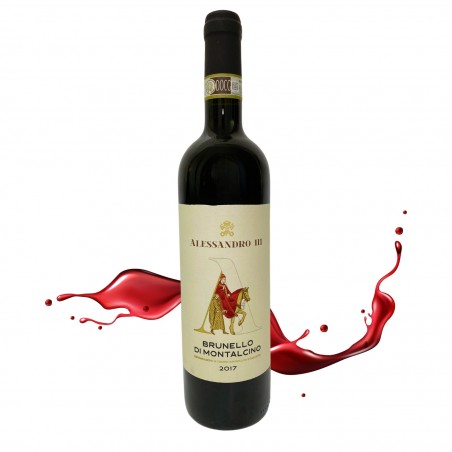Il Brunello di Montalcino DOCG 2017 Alessandro III si presenta con un colore rosso rubino intenso. Al naso si percepiscono profumi di frutta matura, spezie, cioccolato e vaniglia. Al palato è morbido e vellutato, con tannini ben integrati e un finale persistente.
